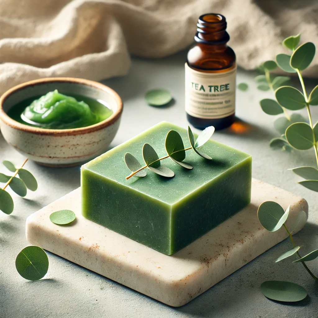 Un jabón refrescante y purificante con árbol de té y eucalipto, ideal para pieles grasas o con tendencia al acné.